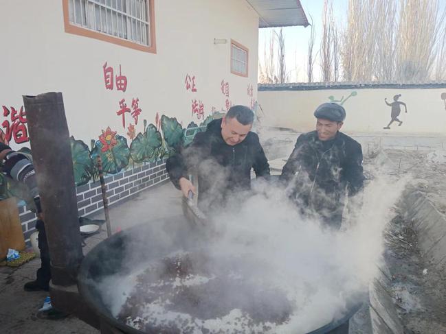 木合塔尔·哈斯木老师为村民准备新疆美食