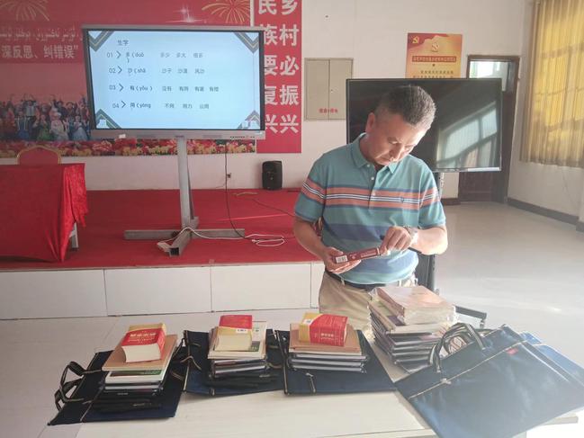 我校驻莎车县孜热甫夏提塔吉克民族乡喀勒提拉村工作队积极组织村“两委”及返乡大学生从思想政治、法律法规、乡村振兴、村庄建设、现代农业生产经营等方面,围绕国家通用语言文字使用能力提升、综合素质及管理能力提升、特色优势产业经营能力提升等内容,以促进现代农业高质量发展为导向,以满足农民理念知识技能需求为核心,以提升农村生产质量效能为关键开展培训,力争为每位参训学员搭建一个学习交流的平台。培训学员阿力木江·阿迪力高兴地说:“老师用通俗易懂的教学方式给我们讲一些日常生活中经常需要使用的交流用语,几堂课下来我的进步还是很大的!”培训学员努尔扎代姆·达吾提表示:“工作队组织的这次培训让我学到了很多新的知识,在课堂上,我做了大量笔记,对今后的农业生产和经营很有帮助!”