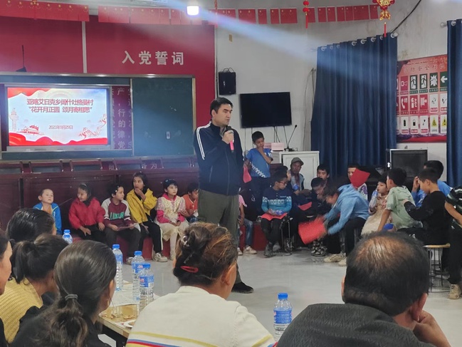 为进一步铸牢中华民族共同体意识,大力弘扬中华民族优秀传统文化,强化民族团结,丰富村民的业余文化生活,9月29日,我校驻亚喀艾日克乡阔什吐格曼村工作队携手村“两委”组织开展“情满中秋 庆国庆”系列活动,本村党员、村民、青少年代表等50余人参加活动。