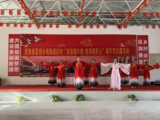 粽叶香,中华情。工作队充分挖掘端午节的文化内涵,组织各类文化活动,促进村民对传统节日的了解和认同,激发村民爱党、爱国、爱家乡,共圆中国梦的热情。我校驻孜热甫夏提塔吉克民族乡喀勒提拉村驻村工作队开展了“浓浓端午情 粽香暖民心”端午节主题活动,组织农民演出队编排了中华传统歌舞、中华戏曲、中华传统服饰走秀等形式多样的文艺节目,演出现场传来阵阵喝彩声,气氛十分热烈。活动期间,工作队还向村民发放粽子,让村民在品尝中华传统美食之时感受到了中华传统节日的魅力。我校驻莎车县亚喀艾日克乡阔什吐格曼村驻村工作队利用“美育小课堂”组织开展了“端午节——中华传统节日文化赏析”主题活动。工作队员与实习支教学生为小朋友们介绍了“端午节”的来源与习俗,并带领小朋友共同完成了“中国龙”“五彩绳”的制作,加强了农村青少年对中华民族传统文化的认同。随后,工作队还与村民共同联谊,向村民讲述了我国伟大文学家、爱国诗人屈原的故事,让村民在故事中追思爱国情怀,在节日中追溯家国情深。