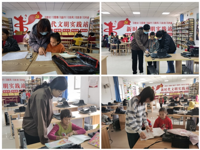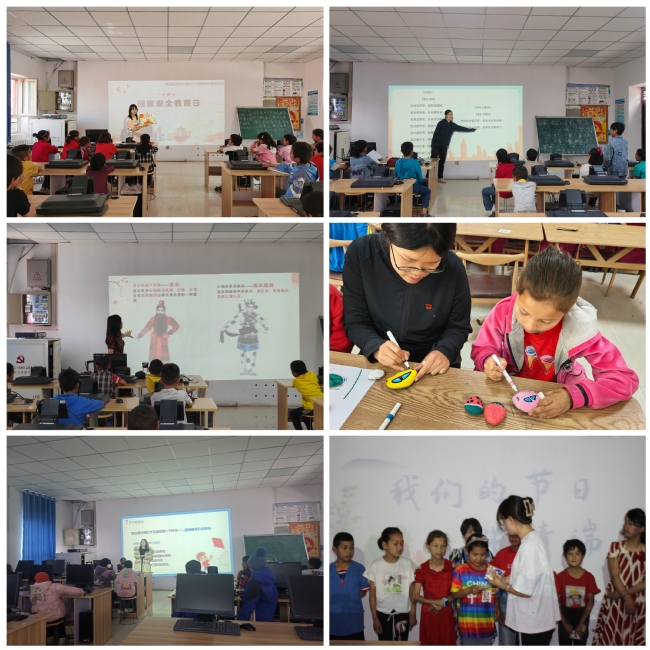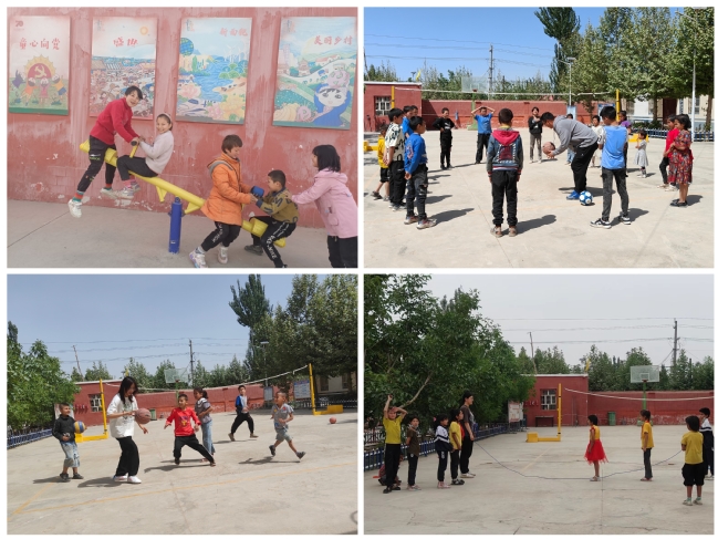 2023年3月初,2名实习支教学生在学校驻村工作队老师的指导下化身“小老师”,每周末和节假日都会在亚喀艾日克村新时代文明实践站开展丰富多彩的第二课堂活动。他们充分发挥专业优势,结合小学生身心发展特点,围绕中华传统文化、“二十四节气”“我们的节日”“十大国粹”、文明礼仪、成长与梦想等主题共策划了16期内容,为村里的孩子们提供了国家通用语言文字辅导、课业辅导、音乐、体育、美术、劳动教育、安全教育等课程,带领孩子们开展各类文化活动,用爱心陪伴着孩子们的成长。实习支教学生通过内容丰富、生动有趣的文艺活动和教育拓展游戏,引导孩子们回顾了本学期的所思所学所感所悟,孩子们通过肢体语言用形象逼真的动作演绎着学过的词语,一同背古诗,一起唱红歌,用自己的优异成绩向实习支教学生表达着谢意。
