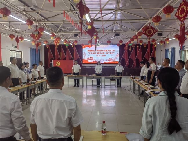 活动在庄严的国歌声中拉开帷幕。全体党员在帕力旦·吐尔逊的带领下,重温入党誓词,铿锵有力的誓言表达了对党的无限忠诚和为共产主义奋斗终身的坚定决心。活动中,帕力旦·吐尔逊传达了自治区学习贯彻习近平新时代中国特色社会主义思想主题教育领导小组会议上的有关文件精神,带领党员一起学习了《习近平对党的建设和组织工作作出重要指示强调 深刻领会党中央关于党的建设的重要思想 不断提高组织工作质量 代表党中央向全国广大共产党员致以节日问候》《习近平在中共中央政治局第五次集体学习时强调 加快建设教育强国 为中华民族伟大复兴提供有力支撑》和自治区党委办公厅自治区人民政府办公厅印发的《新疆维吾尔自治区乡村振兴责任制实施细则》。学习结束后,学校驻莎车县孜热甫夏提塔吉克民族乡喀勒提拉(9)村、亚喀艾日克乡阔什吐格曼(6)村工作队汇报交流了乡村振兴示范村建设工作开展情况。最后,前方党工委与全体党员集体过政治生日。