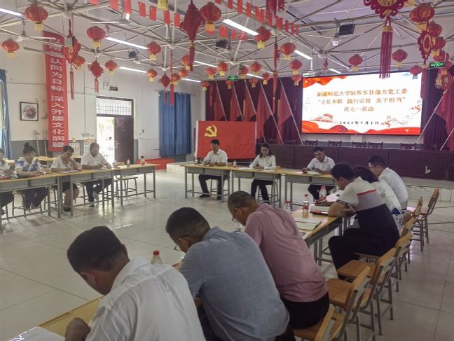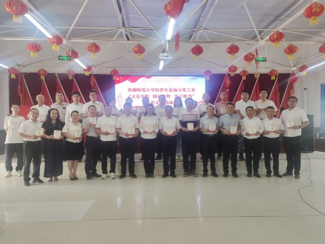 为庆祝中国共产党成立102周年,7月1日下午,学校驻莎车县前方党工委举行“立足本职 践行宗旨 实干担当”庆“七一”主题活动。校党委常委、副校长、驻莎车县前方党工委书记、驻村工作队总领队帕力旦·吐尔逊出席活动并讲话,我校六个“访惠聚”工作队全体党员参加,活动由前方党工委委员、组织委员侯亚文主持。