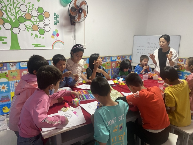 “老师,我特别喜欢画画,但是家里条件有限,不能买很多彩笔去画五颜六色的物品。现在有小课堂了,能用彩笔画自己喜欢的、好看的画,我好高兴呀!” 5月13日第一次参加团结村周末小课堂的小朋友阿依孜巴·图尔荪尼亚孜对老师开心而真诚的说。
