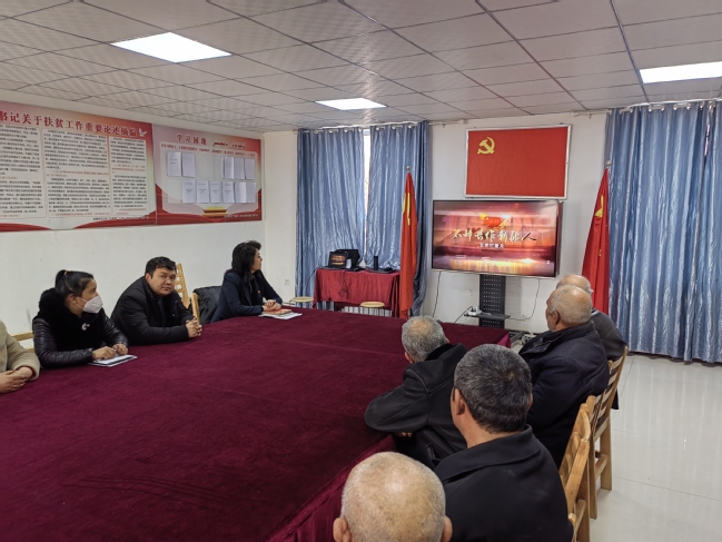 百年征程波澜壮阔,百年初心历久弥坚。为村民播放的电影《不辞长作新疆人》充分展示了中国共产党百年光辉历程、伟大成就和宝贵经验,生动讲述了不同历史时期中国共产党与各族人民风雨同舟、生死与共,从胜利走向胜利的伟大历程;以新时代党的治疆方略、民生建设、文化建设、民族团结、经济建设等方面,多层次、全方位、立体式呈现今日新疆社会稳定的大好局势、人民安居乐业的幸福生活。收看结束后,党员干部们纷纷表示,在以习近平同志为核心的党中央坚强领导下,有党的关怀和各项富民政策,只要我们心往一处想,劲往一起使,团结奋斗,新农村一定会建设地更加美好,村民一定都能富裕起来,一定都能过上好日子。我们会在乡村振兴道路上踔厉奋发、笃行不怠,以更加饱满的热情、更加昂扬的斗志,为建设“宜居宜业和美乡村”贡献自身力量。