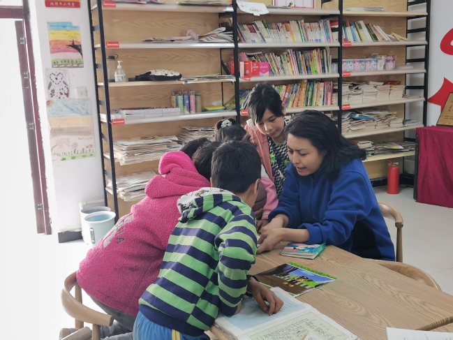 帕力旦·吐尔逊副校长指导孩子们字词发音