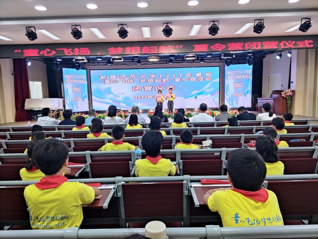 两位学生主持人宣布夏令营闭营仪式结束。汗克孜·努尔艾合麦提说:“这次夏令营活动,让我们度过一个丰富多彩、充实、有意义的暑假,活动虽然结束了,但它的影响,将伴随我们一生。它像一道光,照亮我们未来的路;它又像一把火,点燃我们心中的梦想;它更像一粒种子,今天种下希望,未来开花结果。”艾热帕提·塞普丁说:“我们全体同学会以这次夏令营活动为起点,树立远大理想,严格要求自己,不辜负新疆师范大学领导、老师的期望。我们也会牢记习近平爷爷的嘱托:发奋学习,练就本领,在今后的学习中取得更大的进步,力争明年考入内初班!”