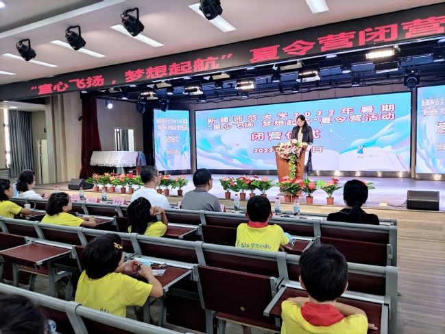 仪式上,与会人员观看了夏令营活动视频,了解了本次夏令营活动从动员会议、出征仪式、开营仪式到夏令营活动顺利开展的全部过程。夏令营期间,在附属中学和校团委的组织策划下,全体学员积极参与,一是接受爱国主义教育。通过学唱红歌,学习英雄事迹,传承红色基因,学习中华优秀传统文化知识,聆听新疆故事,激发爱国热情,争做爱党爱国爱疆好少年;二是开阔视野。通过“行万里路”,乘坐火车、参观大学校园、科技馆、博物馆、动物园等,开阔视野,增长见识,树立远大目标;三是培养良好习惯。以专题授课形式培养良好习惯,对知识点逐项查缺补漏,用好学校优质教育资源,强抓弱项,补足短板。