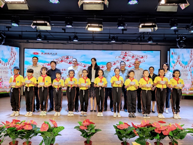随后,在欢快的《民族团结一家亲》舞蹈中,学生们开始了汇报表演。美术作品展、古诗词串烧、信息科技展示、武术《五步拳》、表演唱《我骄傲,我是中国人》,精彩纷呈、紧凑有序的节目表演,向与会领导、老师汇报了学生们的夏令营收获。汇报表演后,夏令营学生代表向与会领导、老师赠送了心意卡,感谢新疆师范大学党委、党委组织部、校团委、后勤服务中心、附属中学、昆仑校区管委会、继续教育学院等部门,以及莎车县委、教育局党委、亚喀艾日克乡党委、亚喀艾日克乡中心小学等单位对他们的支持、关心和关爱。