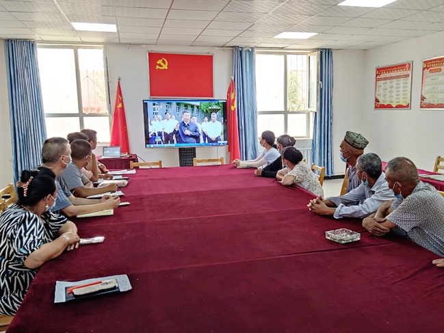 最后,党员代表分享了学习体会。老党员图如普·麦麦提难掩激动之情首先发言,他说:“习近平总书记在新疆考察的新闻我看了很多遍,他的到来,让我们感到无比温暖。我们要满怀感恩之心,勇挑担当之责,脚踏实地,踔厉奋发,在党的领导下为实现第二个百年奋斗目标继续奋斗。”农民党员古再丽努尔·阿不都克热木说:“总书记的谆谆嘱托,是我们天山儿女团结奋进、建功新时代的光辉指引,我要坚决把总书记的深切关怀转化为前进的动力,牢记嘱托,守护好民族团结,促进各族群众共建美好家园。”村干部杜世林感慨地说:“习近平总书记这次来新疆考察时多次提到民族团结和发展,今后我要按照习近平总书记的指示,认真履职尽责,面对面了解群众诉求,帮助大家办好事、办实事、解难题,促进各族群众手足相亲,让老百姓的获得感、幸福感、安全感不断增强,日子越过越好。”