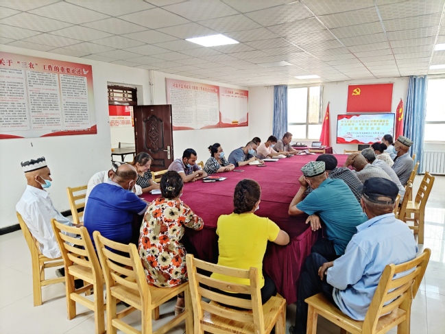 阿不拉·玉素甫带领党员学习习近平总书记考察新疆重要讲话精神