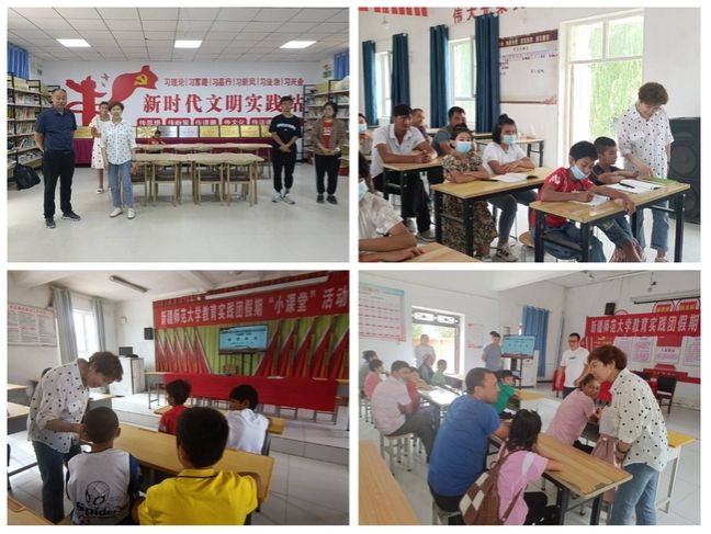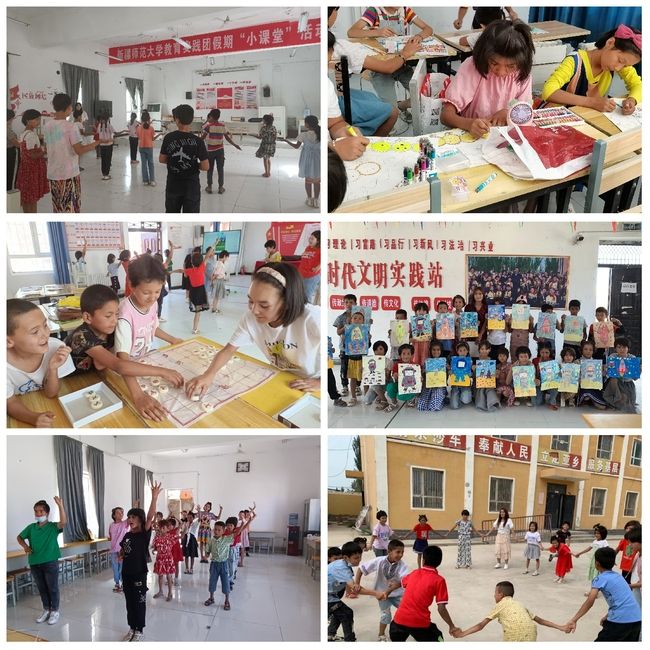 为进一步推进我校对莎车县亚喀艾日克乡中心小学教育帮扶工作,按照教育部《关于做好2022年中小学暑期有关工作的通知》,使广大中小学生度过一个平安、健康、快乐、有意义的暑假,促进青少年健康成长,持续深化落实“我为群众办实事”实践活动,7月14日,我校与亚喀艾日克乡党委、亚喀艾日克乡中心小学联合在亚喀艾日克乡11个村启动了为期20天的“新疆师范大学教育实践团暑假‘小课堂’活动”,让孩子们今年暑期过上了有人陪、有人教、有人爱的快乐时光。