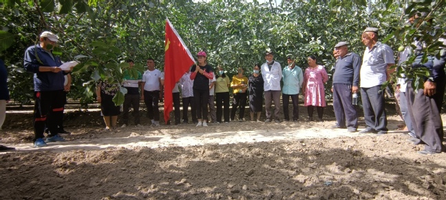 春未尽,夏初临。今年5月是第41个民族团结教育月。为深入贯彻落实习近平总书记关于加强和改进民族工作的重要思想,营造各族群众共同团结进步,繁荣发展的良好氛围,5月27日,亚喀艾日克村党支部联合工作队党支部在种植户唐子雄的核桃园里举行“铸牢中华民族共同体意识、同心同德共发展”主题党日活动。活动由亚喀艾日克村党总支副书记、工作队党支部书记阿不拉·玉素甫主持,全体党员参加活动。