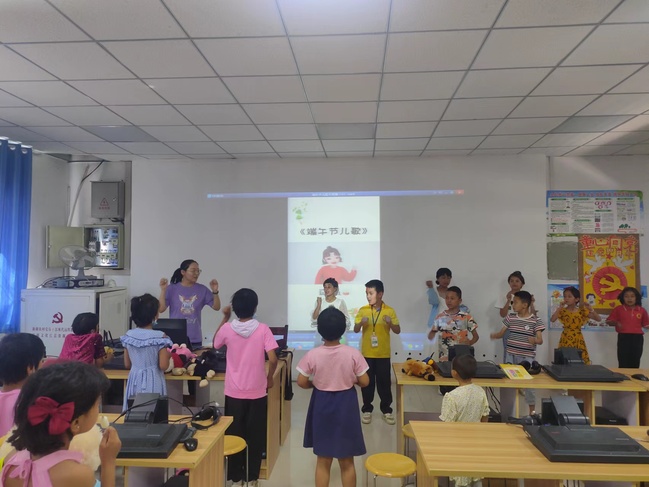 伴着舒缓的配乐,艾斯卡尔江、迪丽努尔肉孜、努尔曼古丽、苏比努尔等小学生为大家慷慨激昂、声情并茂地朗诵了《端午》《五月五日》《端午感兴》等脍炙人口的端午诗词及相关谚语。孩子们还跟着老师一起学习了《端午节》的儿歌和手势舞,在场的孩子纷纷举起双手,随着音乐的节奏韵律动起来,感受博大精深的中华文化。