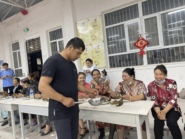 活动开始时,工作队员阿满古丽老师首先向村民介绍了端午节的由来习俗及蕴含的爱国主义情怀。随后,在实习学生王媛媛的指导下,大家在说笑中体验着包粽子的快乐。经过大家的共同努力,两桶糯米变成了一个个粽子。村民们吃着自己包的粽子,伴着欢快的音乐、跳起了麦西来甫。他们纷纷表示,以这样的方式过传统佳节,让大家感受到了浓浓的节日气氛,了解了端午节的来历习俗,学会了包粽子,很开心。