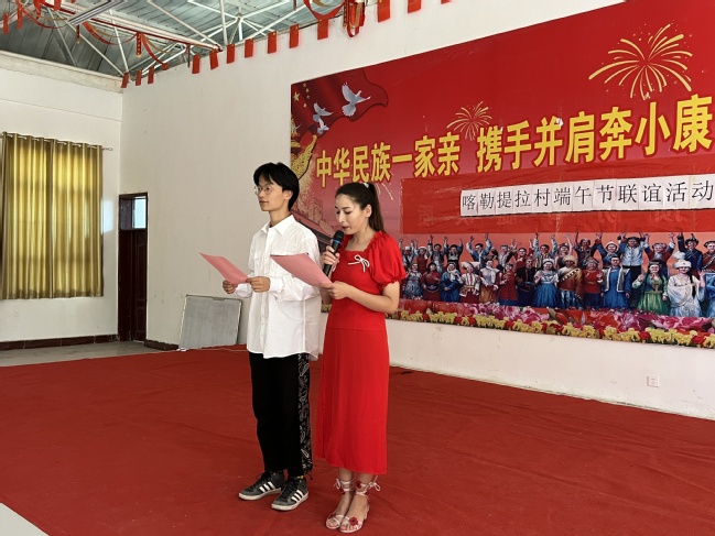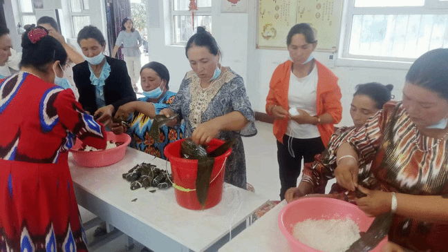 在孜热甫夏提塔吉克民族乡喀勒提拉村,端午节当天,驻村工作队与村委会联合举办了“粽叶飘香迎端午、民族团结话情深”联谊活动。