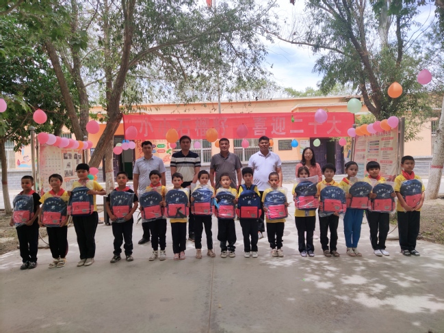为提高亚喀艾日克乡中心小学学生学习积极性,营造良好学习氛围,6月1日,学校驻莎车县前方党工委代表学校为乡中心小学5所学校购买了550个书包,奖励在德智体美劳等方面表现突出的学生。学校驻亚喀艾日克乡8村工作队副队长阿不拉·玉苏甫、6村工作队副队长艾克拉木·牙合甫代表前方党工委参加了颁奖活动并寄语。