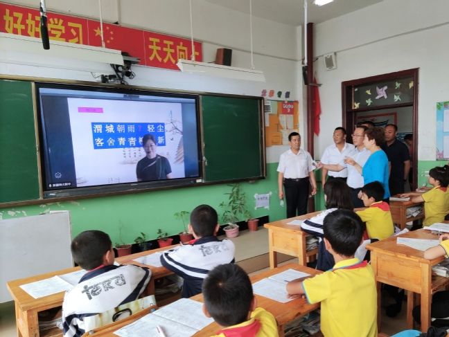 仪式上陈海洋、马建刚分别代表县教育局和乡中心小学向我校赠送了锦旗。