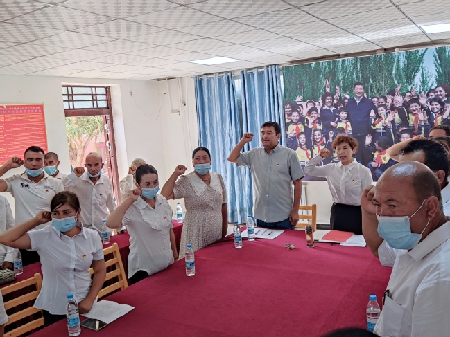 在七一建党节来临之际,为表彰先进,树立典型,进一步激励和引导全体党员同志不忘初心,牢记使命,继承和发扬党的光荣传统和优良作风,营造喜迎二十大胜利召开的浓厚氛围,亚喀艾日克村党总支于7月1日上午举办了“树立先进典型 汲取奋进力量”庆祝中国共产党成立101周年暨“七一”表彰活动。校党委常委、副校长、驻莎车县前方党工委书记、亚喀艾日克村党总支书记、第一书记孙秀玲出席活动并讲话,活动由村党支部副书记阿扎提古丽·赛皮丁主持。