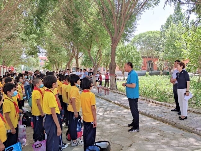 校党委常委、副校长、驻莎车县前方党工委书记孙秀玲,亚喀艾日克乡党委书记梁秀超,乡中心小学党支部书记马建刚,校长吐尔洪江·图尔孙以及部分在亚乡的驻村干部参加了出征仪式。孙秀玲作动员讲话,她希望带队老师要履职尽责,将师生的生命安全放在首位,指导学生有序开展各项活动,要求同学们珍惜机会,注意安全,听从指挥,遵守纪律,相互帮助,树立良好形象,通过参加这次活动能树立远大目标,增长见识,提升素养,努力做一个对社会有用的人才。梁秀超、马建刚对学校党委全力帮扶亚乡小学所采取的各项措施以及对南疆基础教育给予的关注和支持表示了衷心感谢,并对家长、学生进行了感恩教育。
