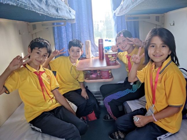 在我校驻村工作队队员、亚喀艾日克乡中心小学副校长郭光慧及3名乡小学指导教师的带领下,参加夏令营的44名学生乘坐火车从莎车县出发,历经20个小时,于7月4日下午抵达乌鲁木齐。