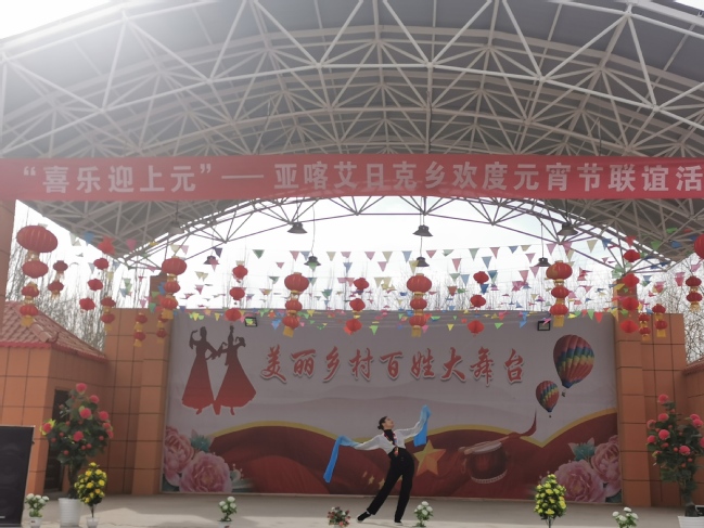 当天,亚喀艾日克乡还举办了“喜乐迎上元”元宵节民俗文化联谊活动。各村文艺表演队欢聚在亚喀艾日克村乡村大舞台,震天的锣鼓,威武的雄狮,欢腾的巨龙,优美的汉代舞蹈和充满活力的儿童舞,让初春的亚喀艾日克村呈现一派祥和氛围,村民们载歌载舞庆盛世,欢欢喜喜闹元宵。