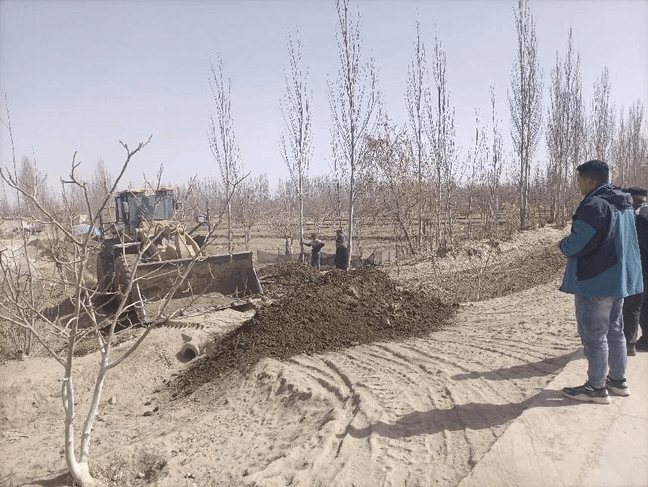 在草木发芽、桃花盛开的三月南疆,学校驻莎车县各工作队结合时节,和村委会一起购买树苗植树,组织村民美化环境,继续为当地村民办实事做好事。