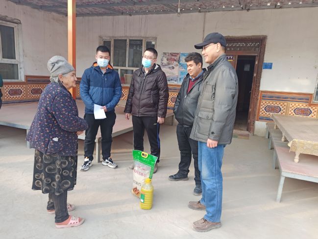虎年春节前夕,1月29日,我校驻亚喀艾日克乡阔什吐格曼村、孜热甫夏提塔吉克民族乡孜热甫夏提村“访惠聚”工作队开展新年走访慰问活动,两支工作队来到村里“四老人员”和困难群众家中,为他们送上节日的温暖祝福,村“两委”干部一同参加慰问。
