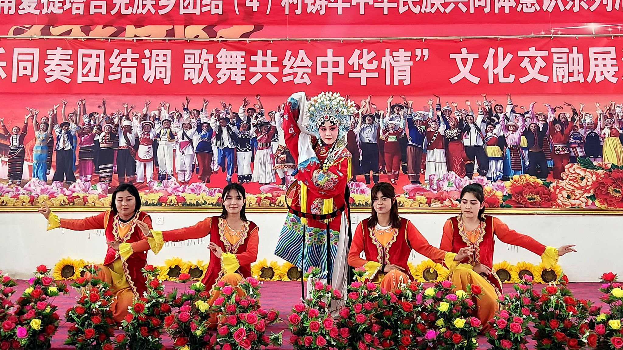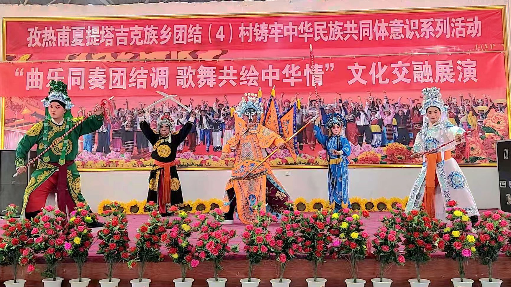 5 月 4 日,在孜热甫夏提塔吉克族乡团结(4)村村民活动大厅,一场以 “曲乐同奏团结调,歌舞共绘中华情” 为主题的文化交融展演活动精彩上演。此次活动由我校驻孜乡团结(4)村工作队与村党支部主办,新疆秦剧团(乌鲁木齐市秦剧团)8位演员与村腰鼓队、舞蹈队农民演员一同演出。共青团莎车县委、乡党委领导及我校各驻村工作队队长参加活动。