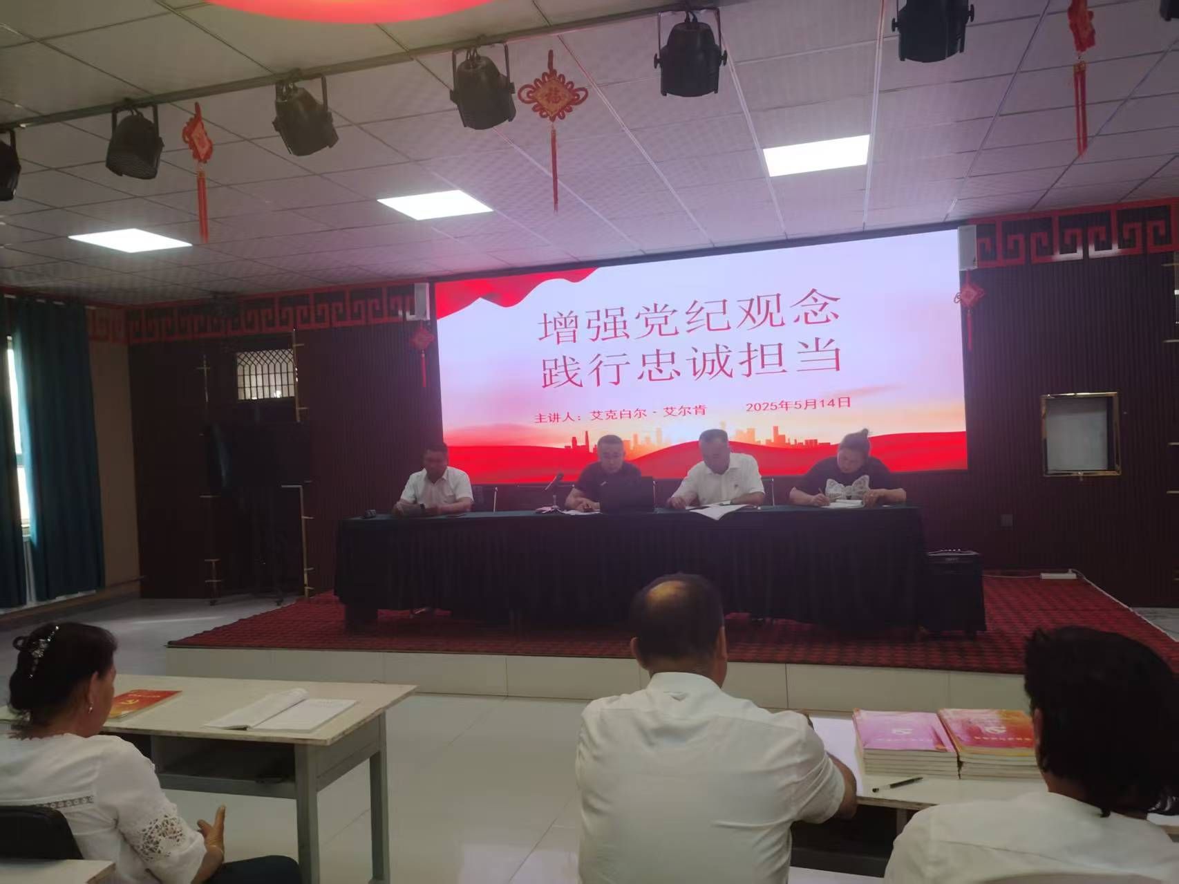 孜热甫夏提塔吉克族乡孜热甫夏提(3)村工作队党支部联合村党支部带领党员学习习近平总书记在中央民族工作会议上的重要讲话精神,组织党员重温入党誓词和接力诵读党章,观看《时代楷模拉齐尼·巴依卡》等民族团结教育视频,工作队队长艾克白尔·艾尔肯给党员讲授《增强党纪观念 践行忠诚担当》专题党课。