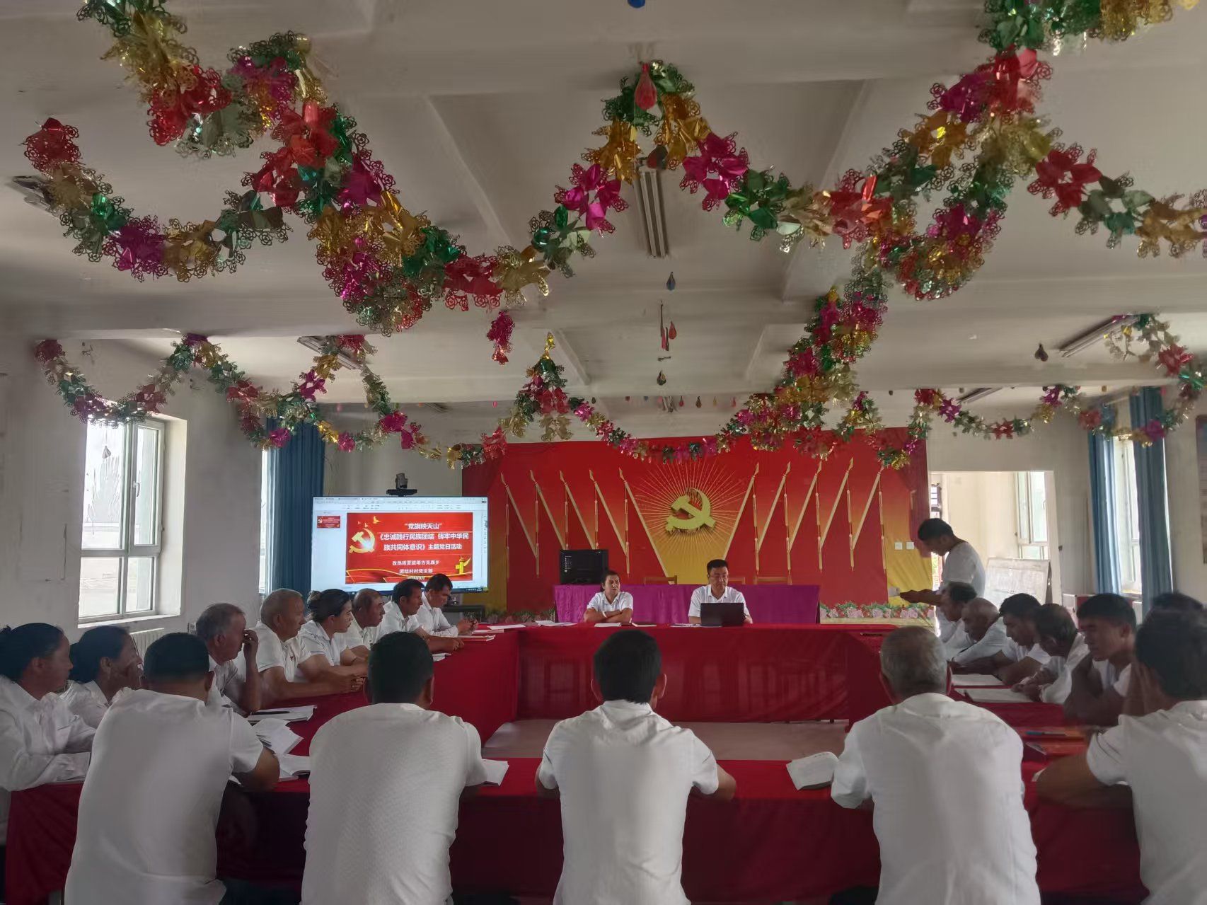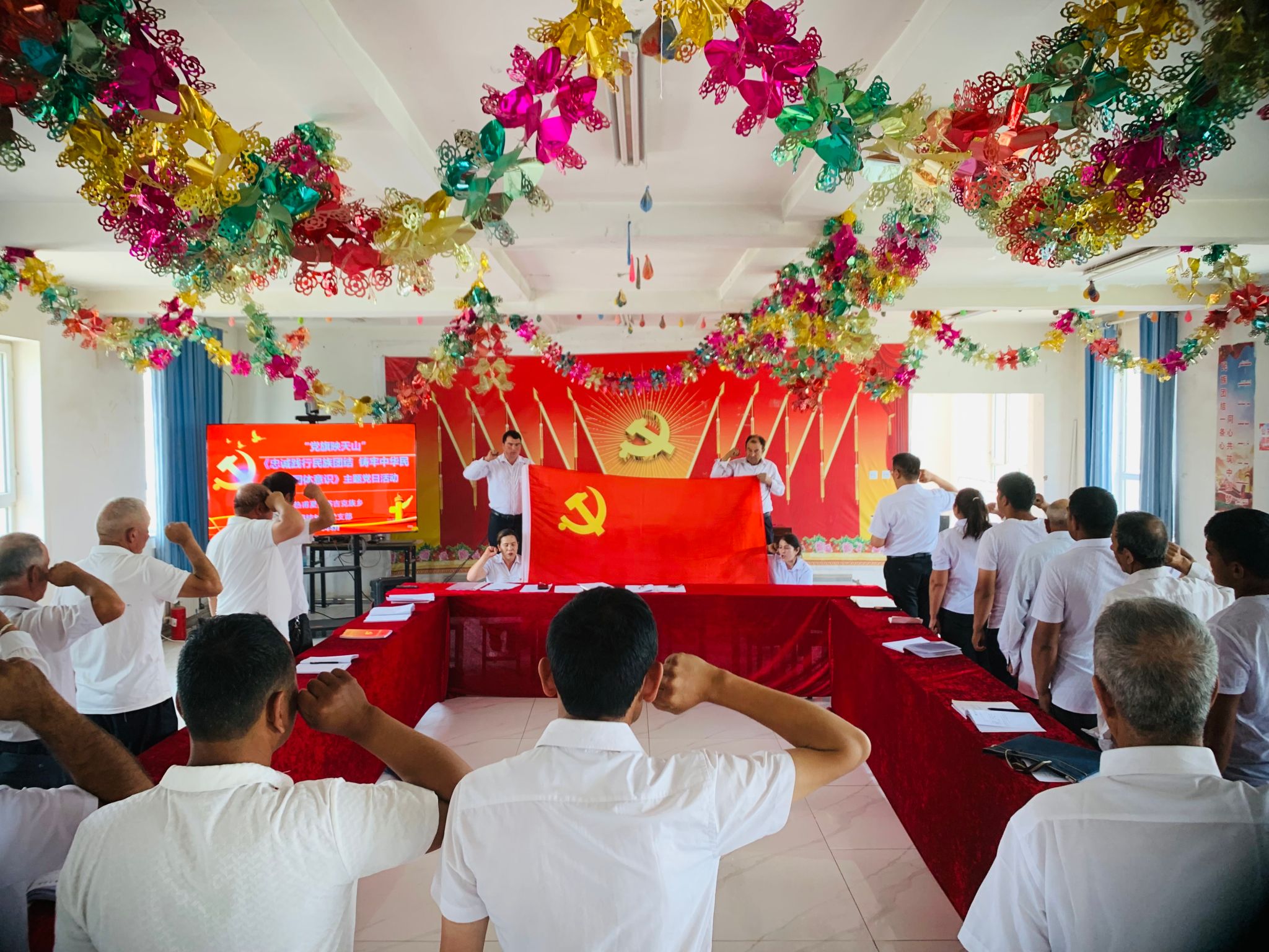 亚喀艾日克乡阔什吐格曼(6)村工作队党支部联合村党支部带领党员学习习近平总书记关于铸牢中华民族共同体意识的重要论述,开展“不忘初心、砥砺前行”重温入党誓词活动,组织“铸牢中华民族共同体意识”知识竞赛。