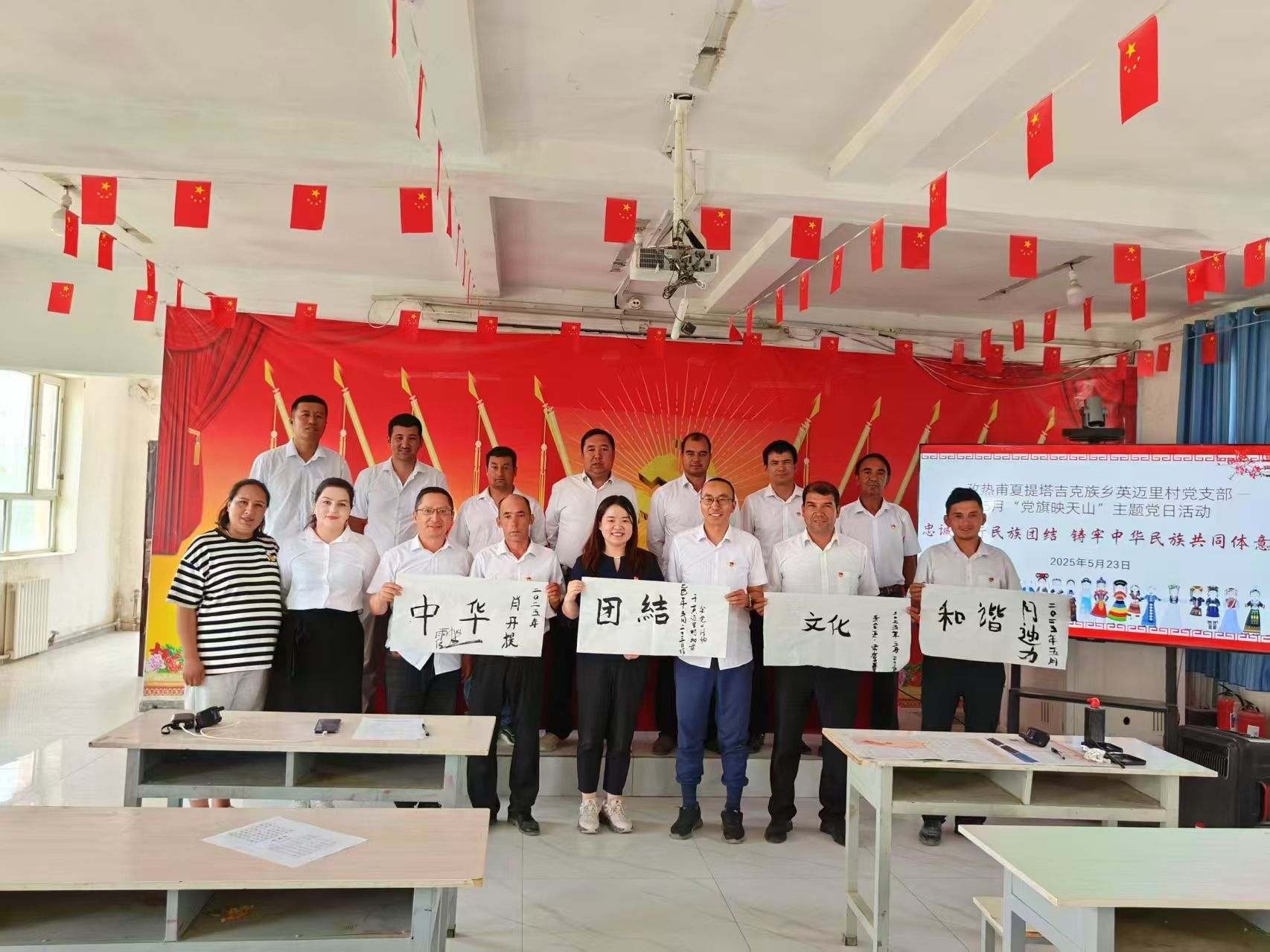 孜热甫夏提塔吉克族乡英迈里(12)村工作队党支部联合村党支部带领党员学习中央八项规定精神和民族团结知识应知应会,组织党员观看民族团结专题片《同心共筑中国梦》,开展“民族团结” 主题书法比赛。