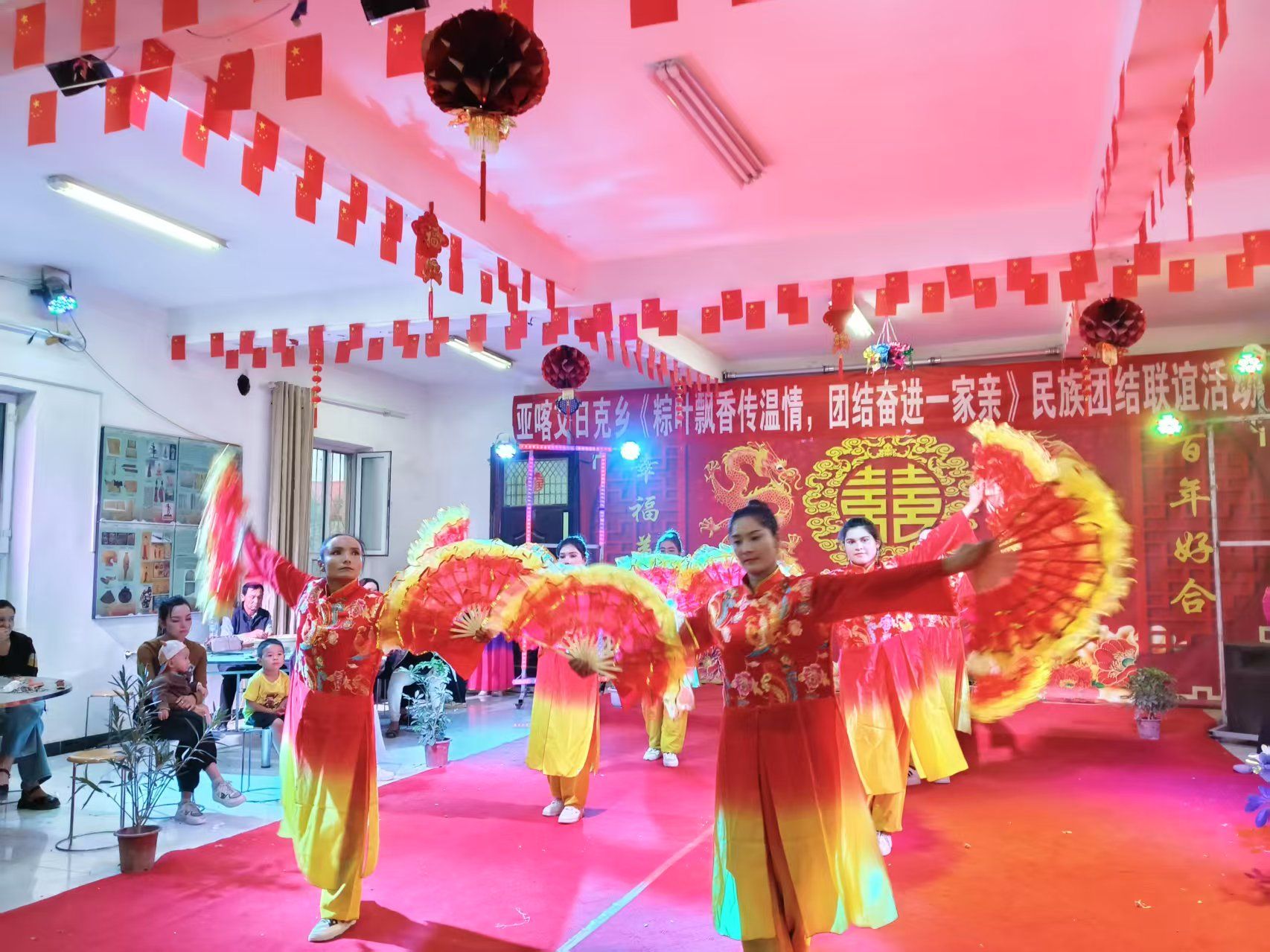 亚喀艾日克乡阔什吐格曼(6)村工作队开展了“粽叶飘香传温情,团结奋进一家亲”端午节主题活动,乡干部、村“两委”成员、村民与驻村工作队员围坐在一起包粽子,欣赏村民表演的文艺节目,度过了一个温馨祥和的节日。