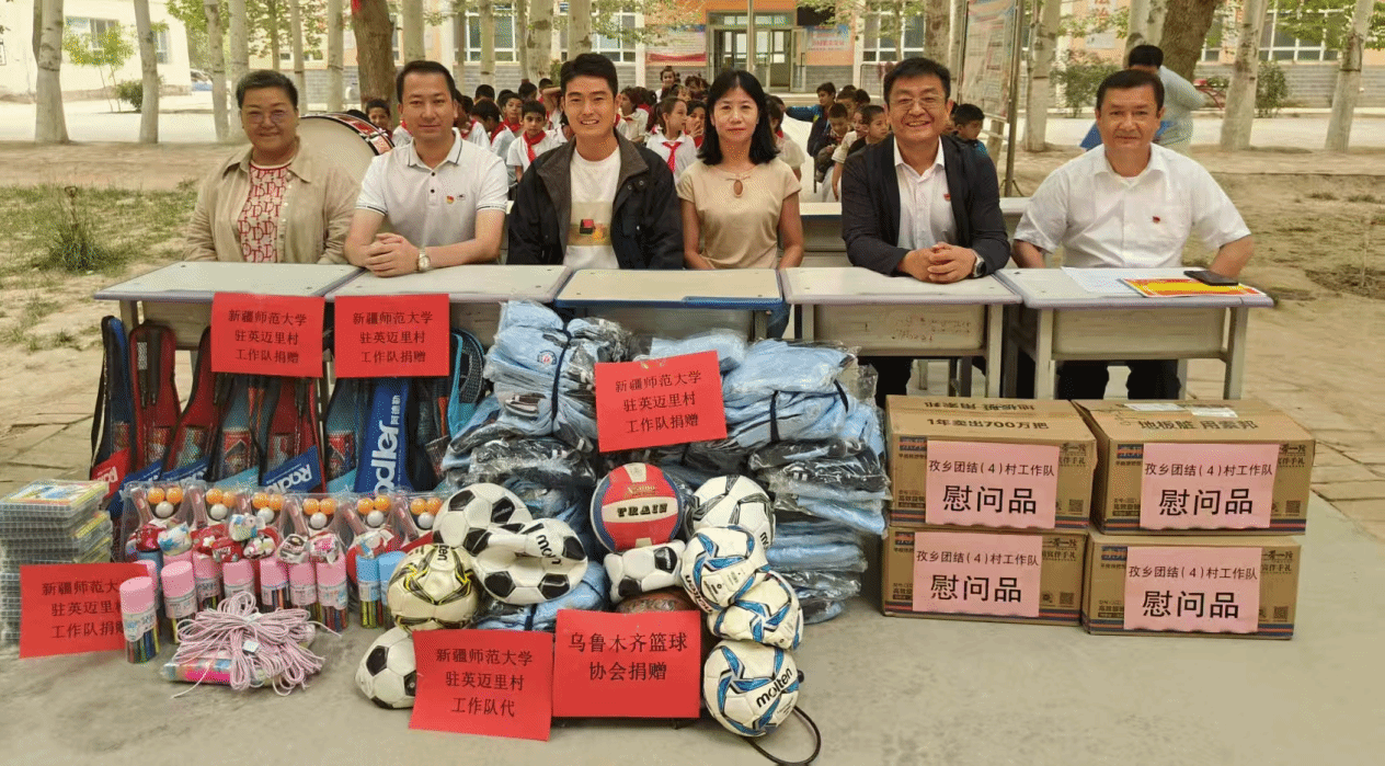 孜热甫夏提塔吉克族乡英迈里(12)村工作队走进希望小学开展“六·一”慰问活动,精心准备107套崭新校服、文具套装及体育器材,并转赠乌鲁木齐篮球协会捐赠的篮球、足球、排球等物资。工作队与村“两委”干部、村民代表及党员围坐在一起,边品尝香甜的粽子,边欣赏书法作品,在互帮互助中感受传统文化魅力。