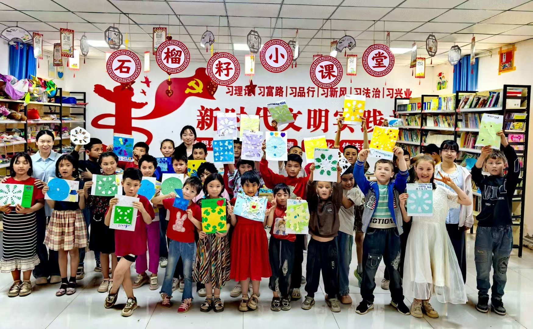 亚喀艾日克乡阔什吐格曼(6)村工作队开展“笔绘梅竹承古韵,手筑积木启新思”“艺织扭花传古韵,舞绽华风拓新程”中华传统文化特色小课堂,组织孩子们学画国画、搭积木、下象棋,制作扭扭花、编练舞蹈,指导青少年感受书法艺术蕴含的深厚文化底蕴。