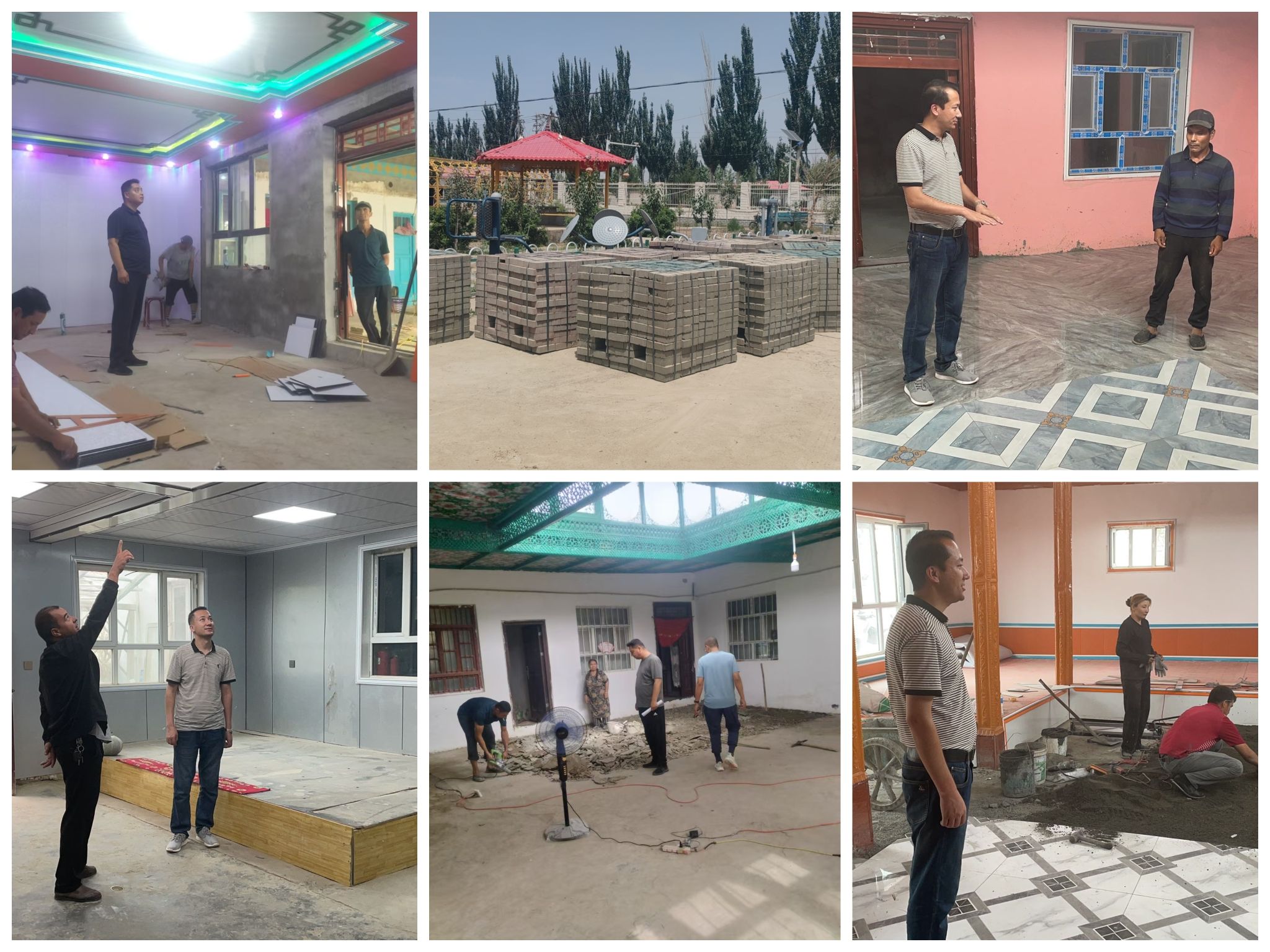 孜热甫夏提塔吉克族乡英迈里(12)村工作队出资购买农药, 保障万寿菊种植稳产。为村民在防渗渠修建入户桥,并实施路面硬化,解决日常通行与道路安全隐患。开展“庭院改造示范工程”,购买瓷砖、墙板、乳胶漆等建材,对选取的10户家庭进行资助。修缮村委会值班室,制作安装交通劝导站宣传展板。